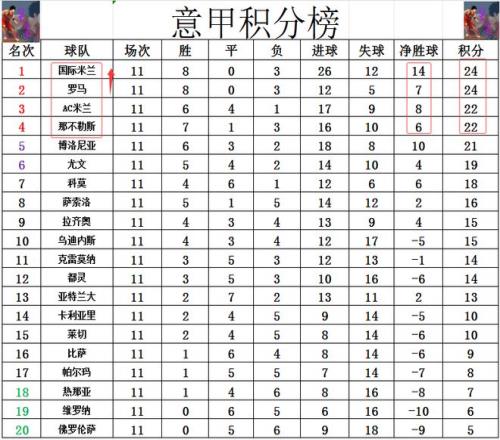 意甲最新积分战报那不勒斯连场不胜丢榜首国米完胜拉齐奥登顶